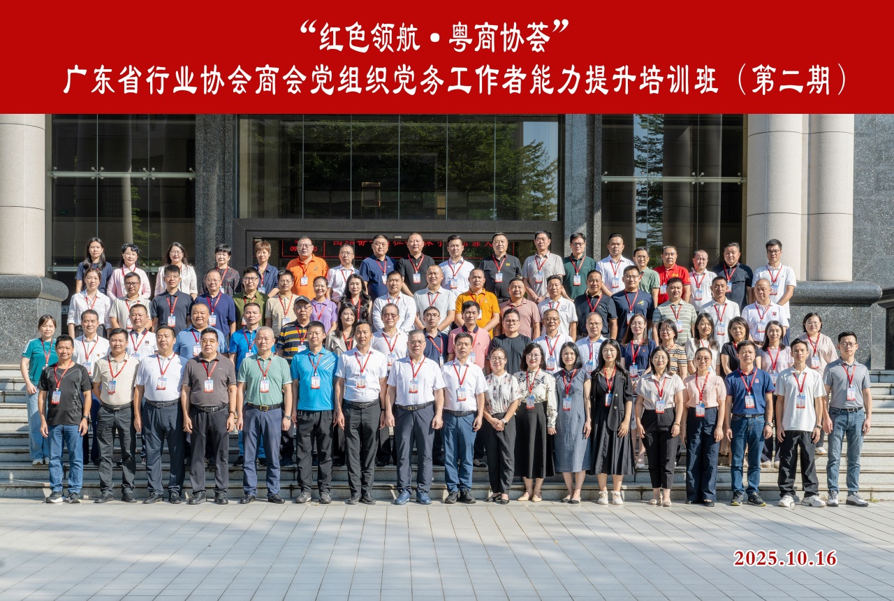 金秋十月,秋风送爽,10月13日至17日,“红色领航·粤商协荟”广东省行业协会商会党组织党务工作者能力提升培训班在中共河源市委党校顺利举办。全省性行业协会商会党支部书记、副书记、党建指导员等共计150人参加培训。我会党支部书记李咏梅全程参与,潜心学习、锤炼党性,在理论熏陶与实践浸润中进一步筑牢信仰之基、提升履职之能。